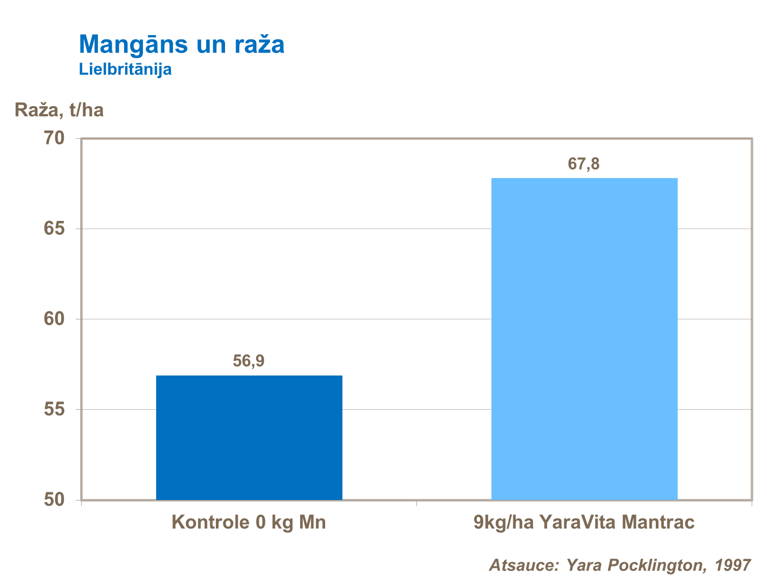 Šis Lielbritānijā veiktais pētījums parāda sausnas satura pieaugumu un bumbuļu izmēra pieaugumu, kā arī kopējo ražas pieaugumu, lietojot mangāna lapu mēslojumu.
