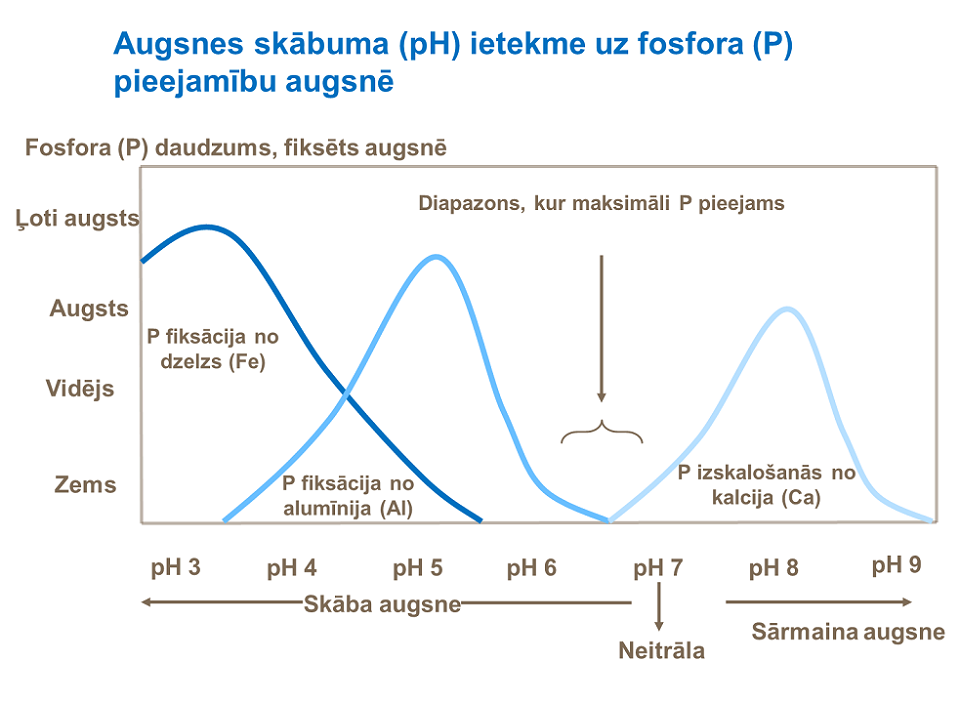 Fosfors tiek uzskatīts par otru svarīgāko barības elementu pēc slāpekļa, ņemot vērā tā ietekmi uz augu augšanu un attīstību. Pēc tam, kad augam attīstījušās divas līdz trīs lapas, tas sāk izmantot augsnē esošo fosforu, lai turpinātu lapu un dzinumu augšanu. Fosfora pieejamību augsnē var ietekmēt daudzi faktori, tostarp pH un citi elementi, piemēram, alumīnijs, dzelzs un kalcijs, kā arī augsnes mitrums un temperatūra.